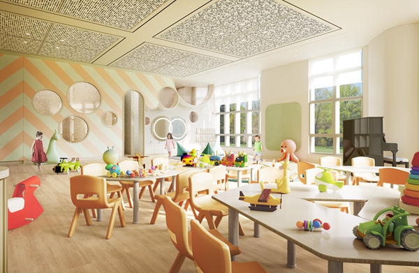 此外,幼兒園打破了傳統(tǒng)幼兒園獨(dú)立封閉的活動空間布局,設(shè)置了更多開放式的幼兒活動與游戲場所,為的是為幼兒營造出一個樂于體驗和探索的園地,從多維度幫助孩子拓展興趣和能力,讓幼兒園真正成為幼兒的“樂園”。